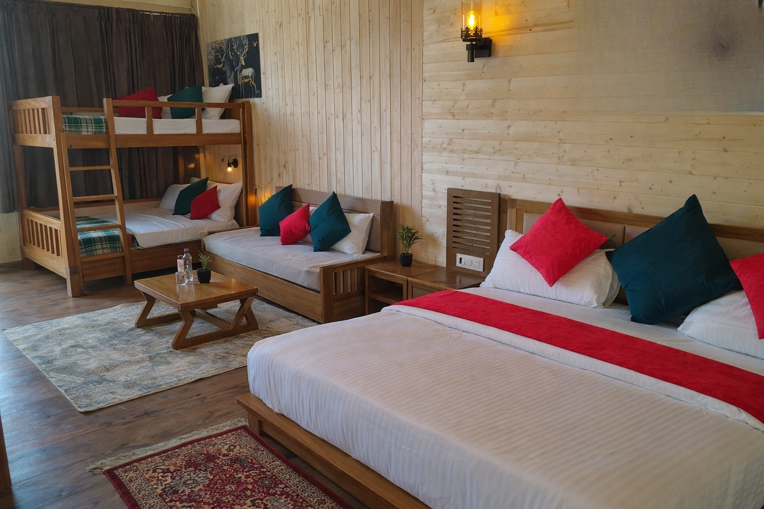 The Family Room at Chopta Resort is perfect for groups of up to 6 guests who want a comfortable, warm, and scenic stay at an affordable price. With well-planned bedding, modern amenities, breathtaking views, and thoughtful details, this room offers excellent value for money in the heart of Chopta.
